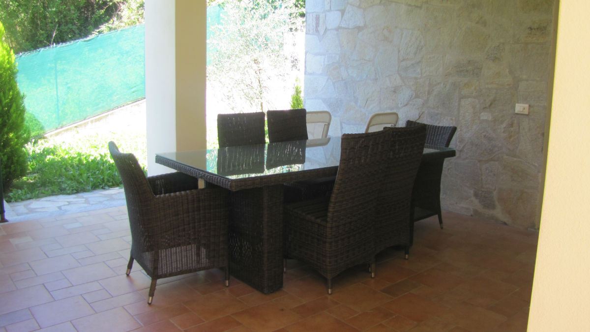 piano terra: ingresso, cucina con ampio porticato coperto, bagno e giardinetto;